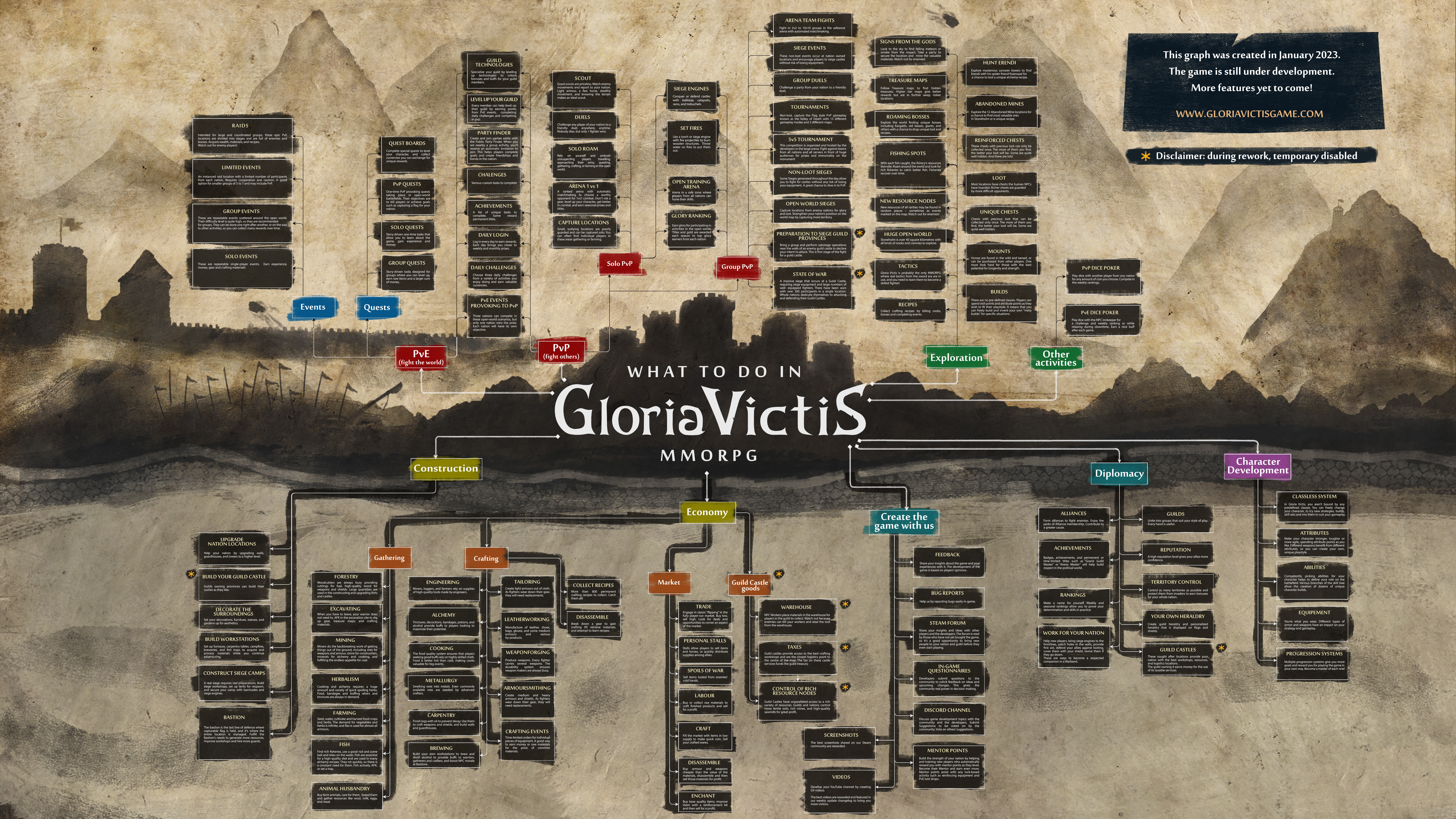 Curious about what you can do in Gloria Victis and what features the game has? Check out this graphic!