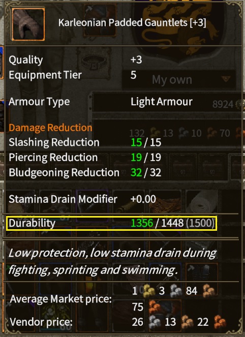• The current quality of the item. High quality items are harder to reinforce.